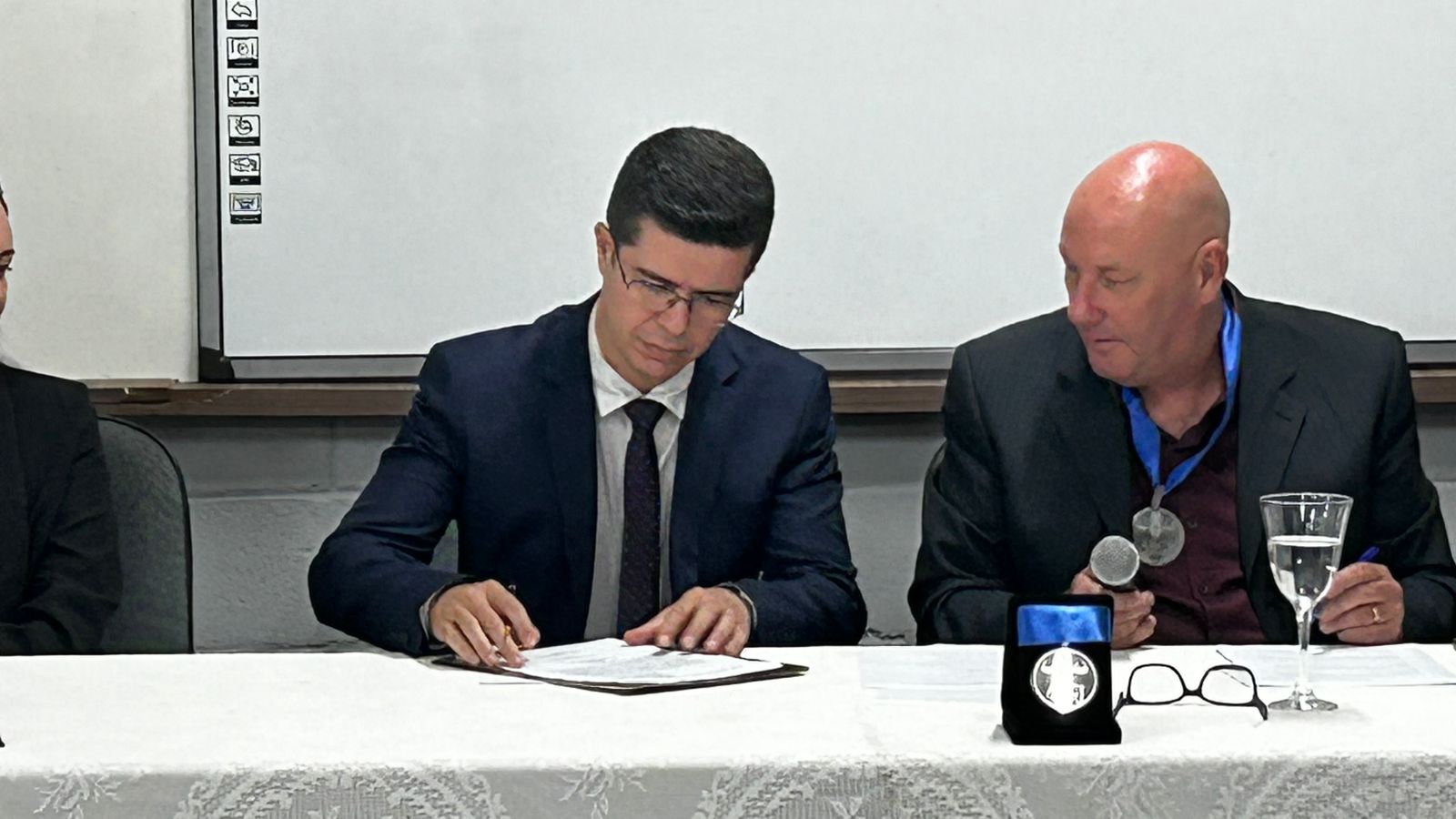 Um dos momentos mais marcantes da cerimônia ocorreu quando o presidente do sodalício, Ricardo Salim, quebrou o protocolo e convidou a esposa e as filhas do novo acadêmico para realizarem a imposição da medalha.